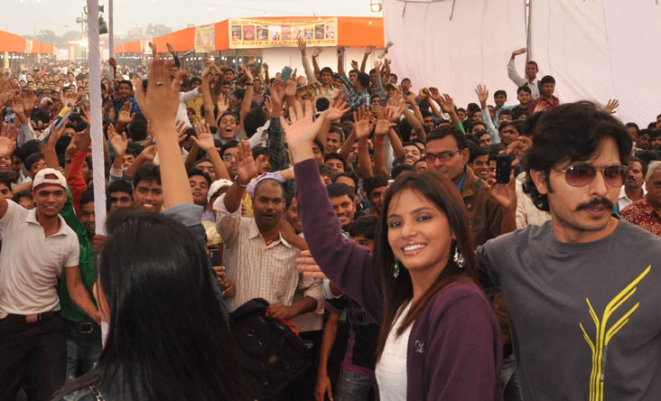 Bollywood actress Nitu Chandra reached Patna National Book Fair at Gandhi Maidan in Patna on November 13, 2011 to promote her latest Bhojpuri film "Deswa".